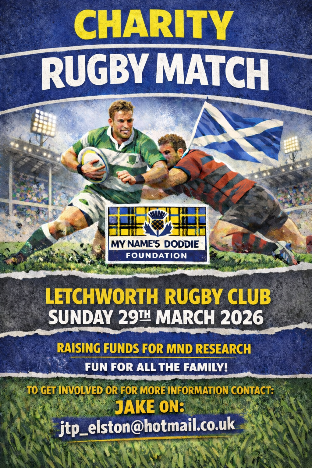 One of our Gamlingay dads is organising a 'Little Ruggers Dad's Charity Rugby Match' for the My Name'5 Doddie Foundation. Obviously a great cause and all proceeds will be going to the foundation! Thanks for our friends at Letchworth Rugby Football Club for offering to host the event. For further details or to confirm your interest in playing, please contact Jake on jtp_elston@hotmail.co.uk....